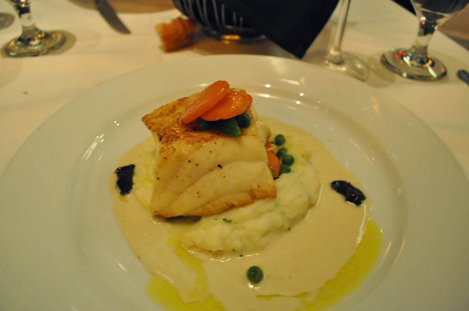 Wrapped with Prosciutto, Mushroom Confit, Natural Jus. The prosciutto (dry-cured ham that is usually thinly sliced and served uncooked) nicely complimented the tenderloin. Mushroom confit I could have done without and the natural jus tasted a bit old. The cut of tenderloin was nice and tender and cooked to a perfect medium however, which served to redeem this dish.